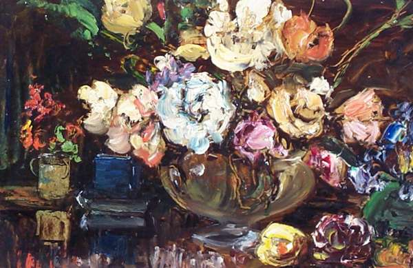 A STILL LIFE OF ASSORTED FLOWERS IN AN URN