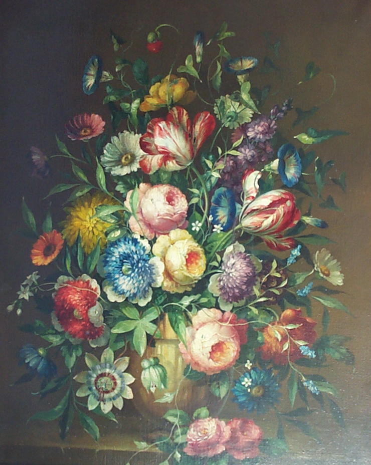 A STILL LIFE OF ASSORTED FLOWERS IN AN URN