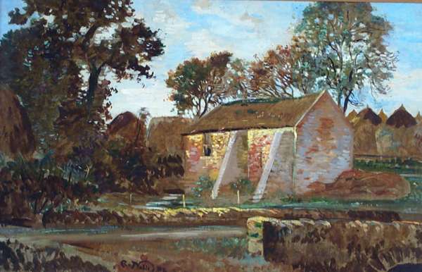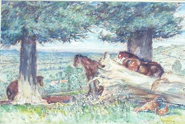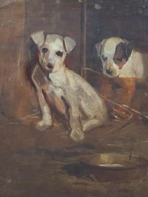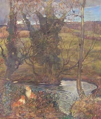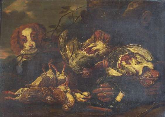 SPANIEL AND DEAD GAME IN A LANDSCAPE