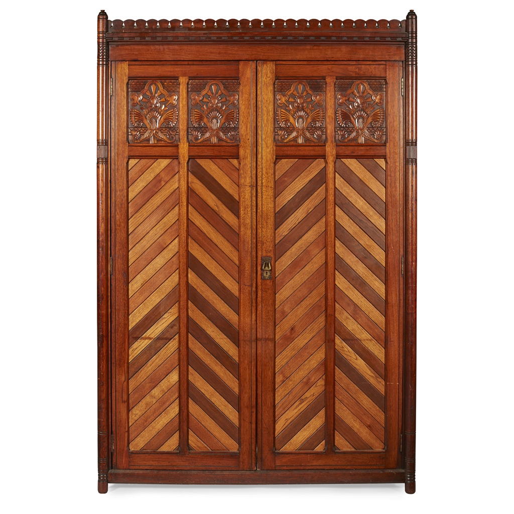AESTHETIC MOVEMENT OAK TWO-DOOR WARDROBE, CIRCA 1880