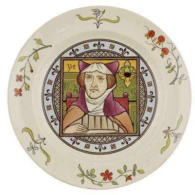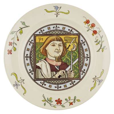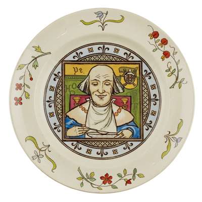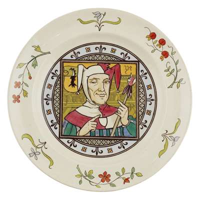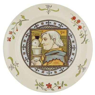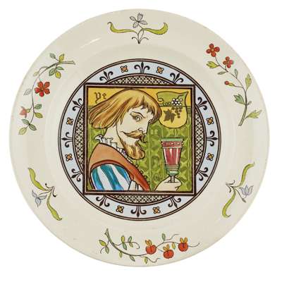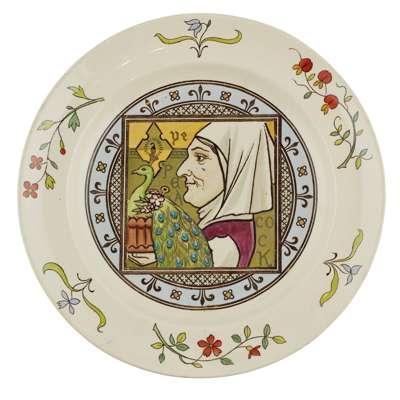 Note: Henry Stacy Marks (1829-1898) was one of a number of freelance designers associated with Minton's and was interested in Medieval themes and iconography, and a regular collaborator with architects and designers including William Burges and Alfred Waterhouse. He supplied designs for use at their Art Pottery Studio in London, established by Colin Minton Campbell in 1871. Wares produced in Stoke-on-Trent were brought to London, decorated and fired in a specially constructed kiln.