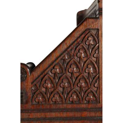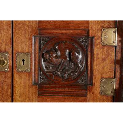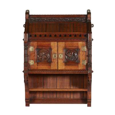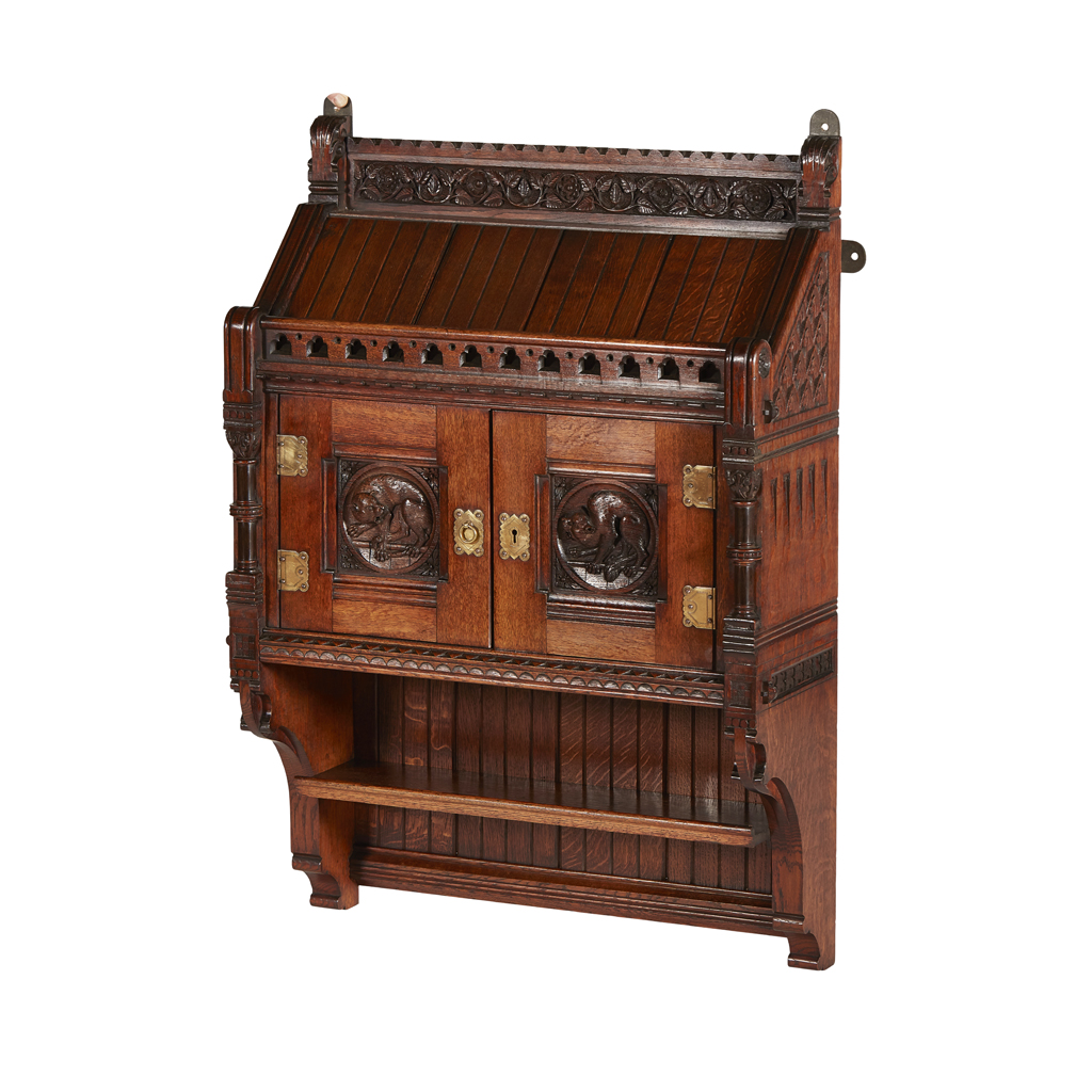 RARE GOTHIC REVIVAL OAK WALL CABINET, CIRCA 1867