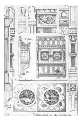 Talbert designed several pieces for Holland and Sons' stand at the Paris International Exhibition of 1867, including a cabinet of the present lot's design and an inlaid cabinet now held at the Victoria & Albert Museum in London (museum no. CIRC.286:1, 2-1955).