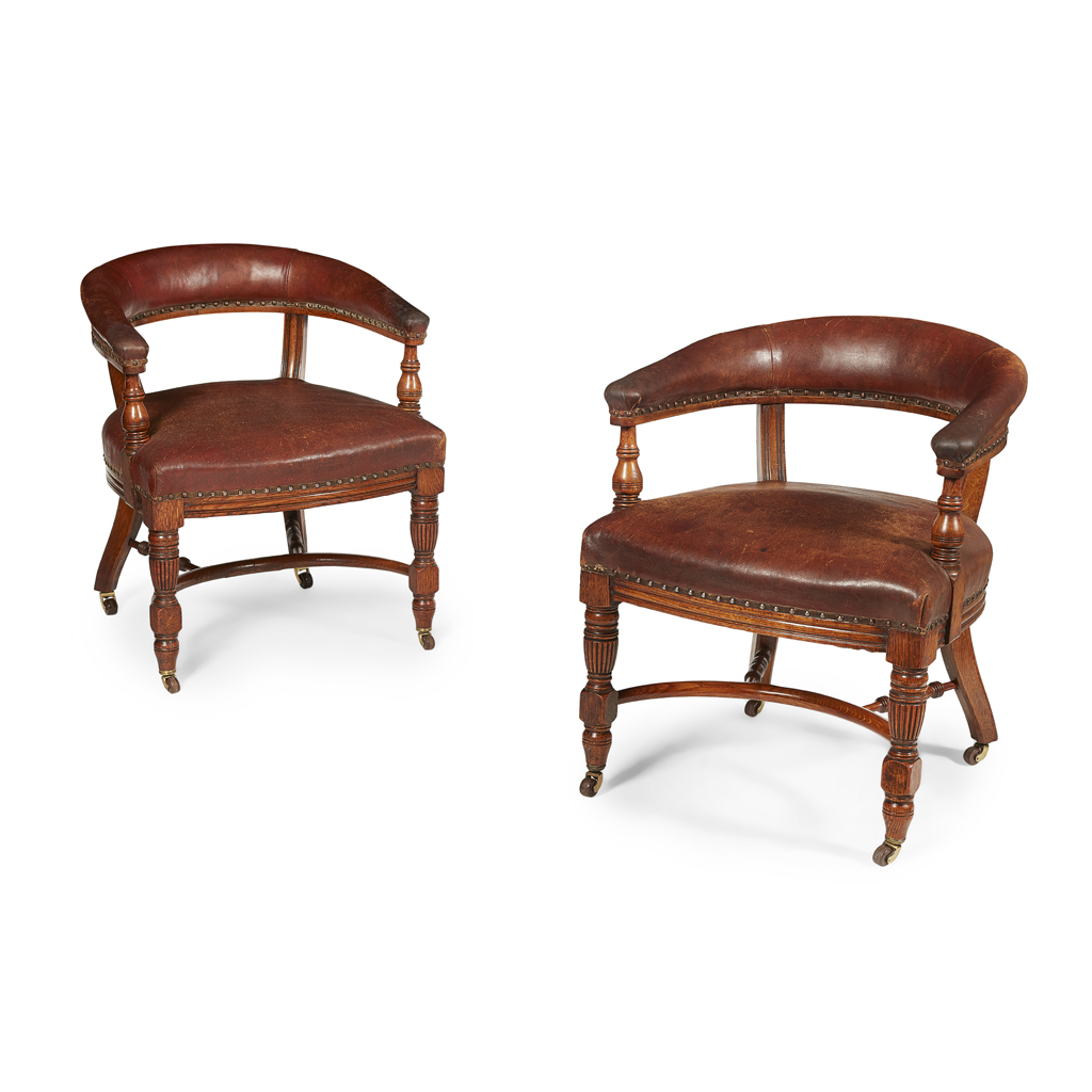 PAIR OF AESTHETIC MOVEMENT OAK CLUB ARMCHAIRS, CIRCA 1880