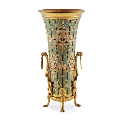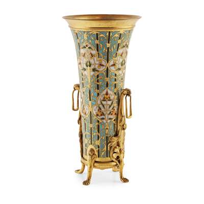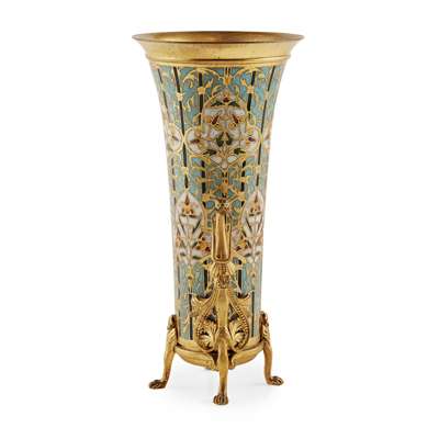 ORIENTALIST GILT BRONZE AND CLOISONNÉ ENAMEL TRUMPET VASE, CIRCA 1880