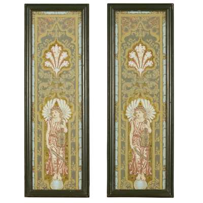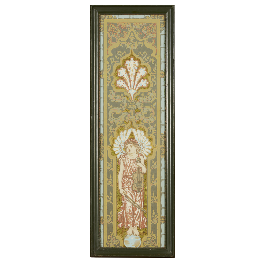 'MUSIC', A PAIR OF HAND-BLOCKED WALLPAPER PANELS, CIRCA 1870