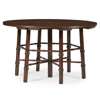 the circular quarter-sawn top on six ring-turned legs and central turned column, all linked with corresponding ring-turned stretchers