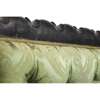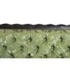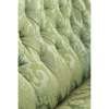 the frame with inset with bobbin decoration, with outward curving back, button-upholstered and with uprights terminating in acorn finials, the upholstered seat raised on six legs joined by H stretchers, each with corresponding bobbin decoration, brass capped castors