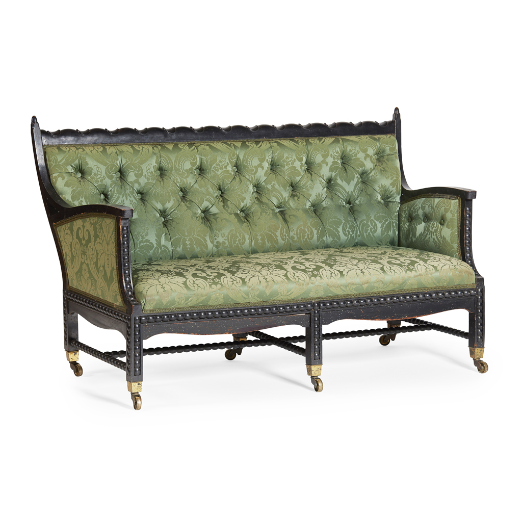 RARE ARTS & CRAFTS EBONISED MAHOGANY SOFA, CIRCA 1875