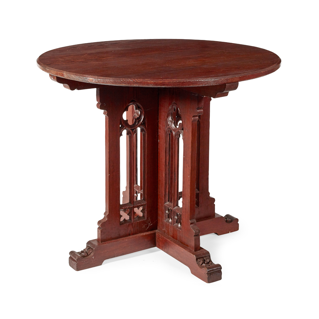 GOTHIC REVIVAL PITCH PINE CENTRE TABLE, CIRCA 1860