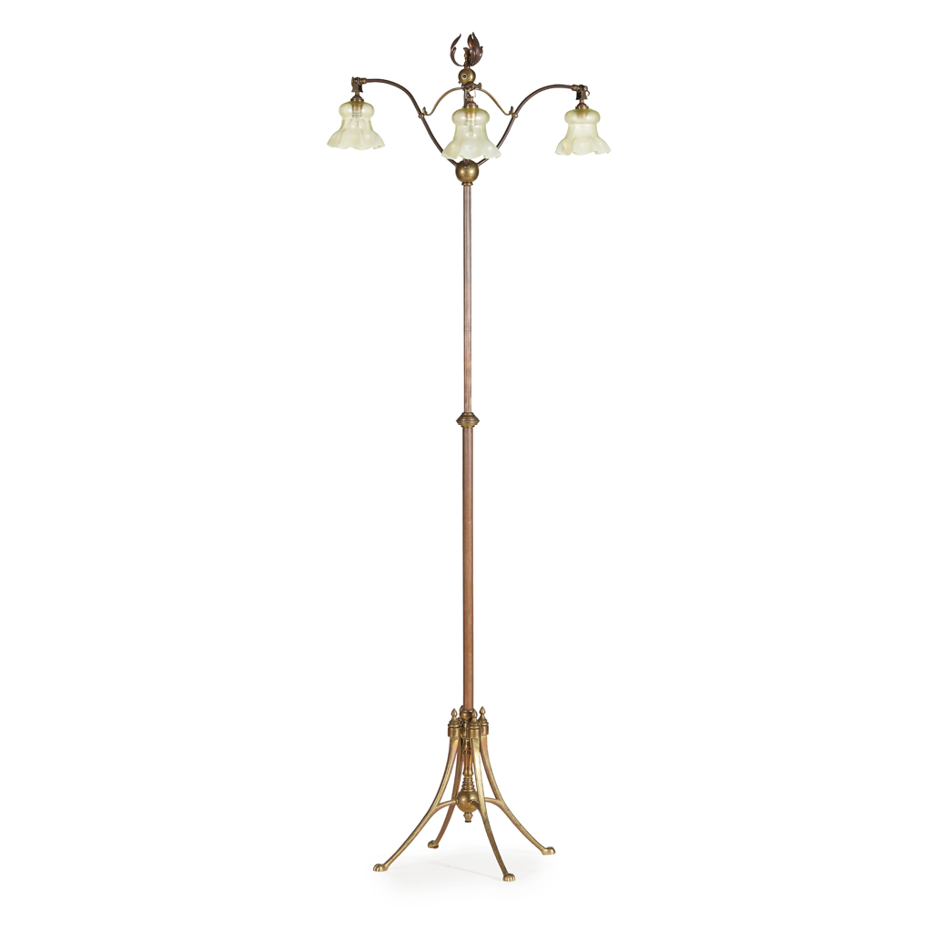ARTS & CRAFTS BRASS AND COPPER EXTENDING FLOOR LAMP, CIRCA 1900