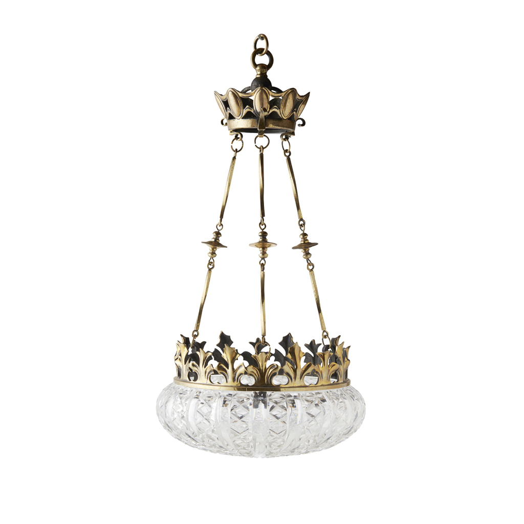 ARTS & CRAFTS BRASS MOUNTED HANGING LIGHT, CIRCA 1900
