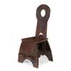 the shaped back with circular piercing above a solid seat and planked support linked by a stretcher, branded facsimile signature to front J. HASSALL