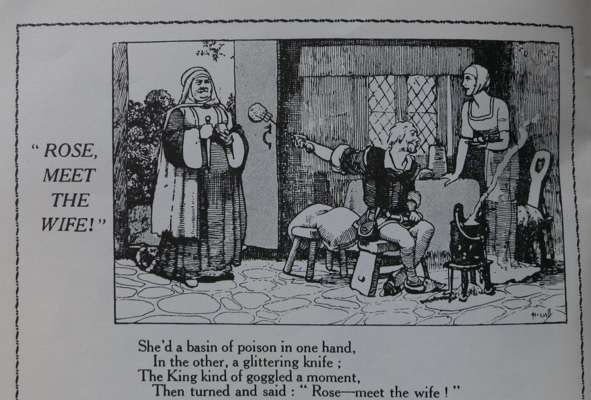 These interesting chairs are rare and other no other examples have come to light. Similar chairs appear in his illustrations for NORMANS AND SAXONS AND SUCH, by Marriott Edgar and published by Francis, Day & Hunter Ltd., London in 1949 (see illustration).