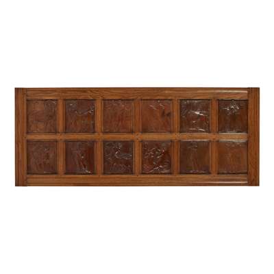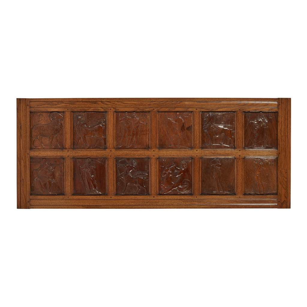 Note: These panels were made by W. E. Micklewright for Henry Wilson, who used carvings of a similar design in the construction of a coffer, illustrated in The Studio, vol. 86. 1923 (see illustration left). Sold by Paul Reeves several years ago, the coffer now forms part of the John Getty collection.