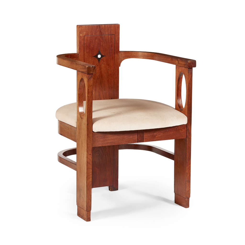 SECESSIONIST INLAID WALNUT ARMCHAIR, CIRCA 1900