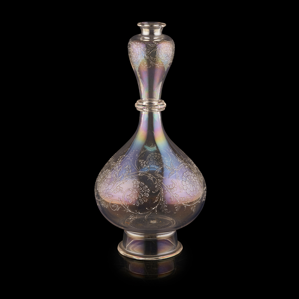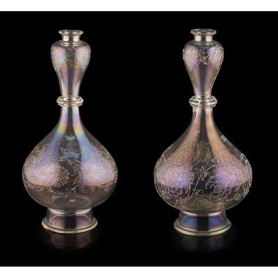 PAIR OF ENAMELLED IRIDESCENT GLASS VASES, CIRCA 1880