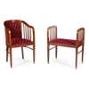SECESSIONIST UPHOLSTERED BENTWOOD ARMCHAIR AND STOOL, CIRCA 1900