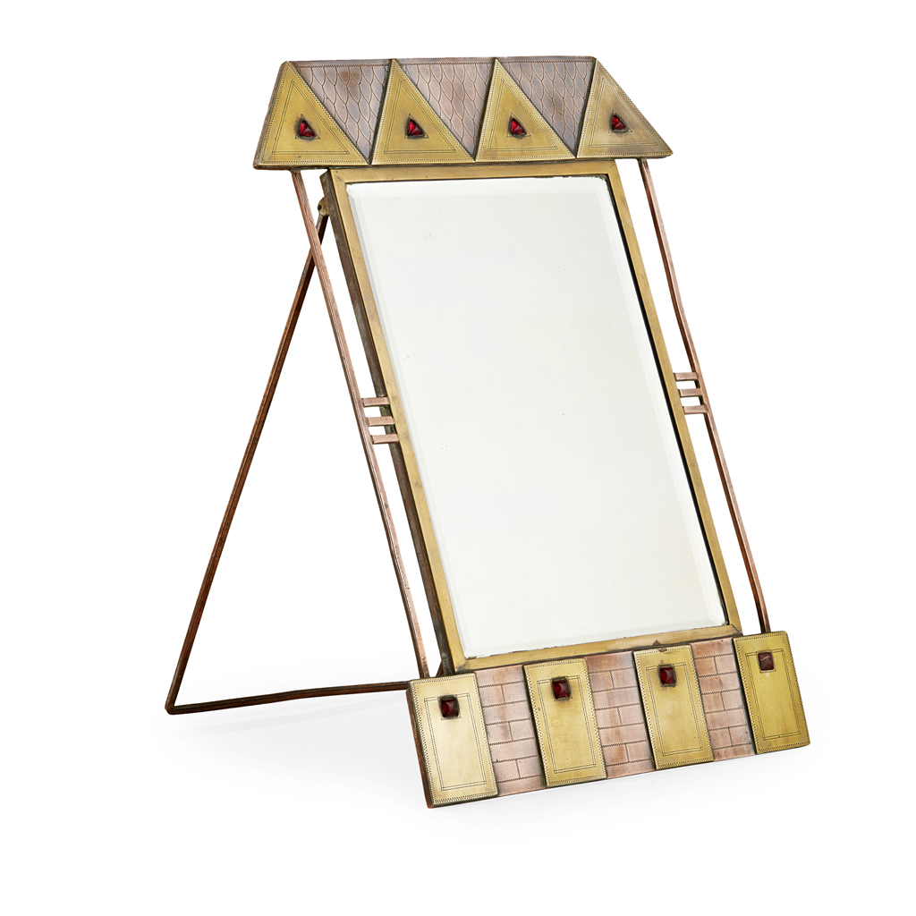 SECESSIONIST MIXED METAL STRUT MIRROR, CIRCA 1900