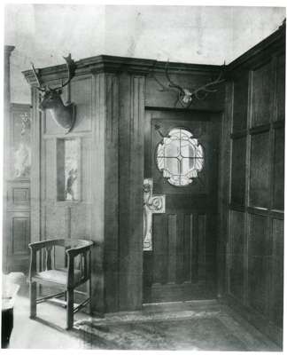 Further evidence has come to light that this door (and by extension the door in lot 263) have been used in buildings designed by other Glasgow architects including the celebrated architect James Salmon (1874-1924) (or his firm Salmon, Son & Gillespie) in a house interior at 12 University Avenue, built around 1900 and now part of a run of general University of Glasgow buildings (see illustration of a door very similar to this lot in situ at University Avenue with original glass). Like 'Kelmscott' the building also was fitted out with stained glass by Oscar Paterson.