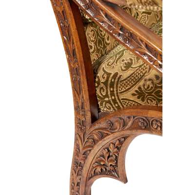 LARGE GOTHIC REVIVAL UPHOLSTERED MAHOGANY ARMCHAIR, CIRCA 1870