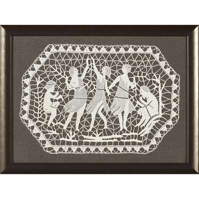 Note: Founded in 1903 by Josef Hoffmann and Koloman Moser, the Wiener Werkstätte brought together a progressive group of visual artists in Vienna who were pioneers in modern design, working in ceramics, fashion, silver, furniture and the graphic arts. 1909 and 1910 saw the introduction of the fashion and textile departments; hand-printed silks in particular became a speciality for the Werkstätte, who's impressive output is thought to amount to 18,000 designs by over 80 artists - an indication of the department's huge success. Dagobert Peche had a particular skill for producing laceworks: typically depicting visions of fantasy, these delicate pieces are admired as works of true beauty and craftsmanship.