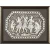 depicting dancers and musicians, mounted on a fabric panel, framed and glazed