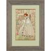 worked in coloured silks and beading on an unbleached linen ground, and depicting a maiden in a garden, framed and glazed
