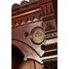 the superstructure with an arrangement of open shelves and central arch set with painted and gilded wrought iron insert, the whole decorated with enamelled copper roundels, depicting floral and foliate motifs, the base with two cupboards and central open shelves above three base drawers on a plinth
