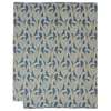 with repeating pattern of lilies in shades of blue, reserved on a midnight blue ground