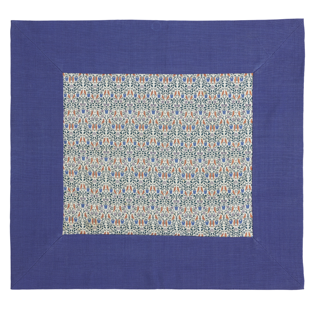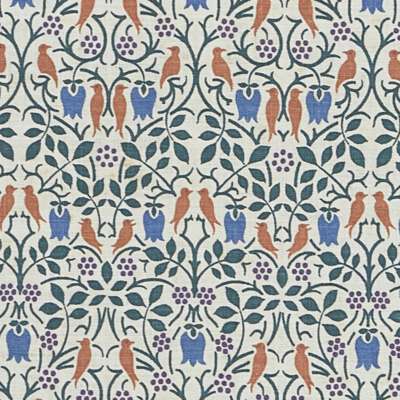 depicting a repeating pattern of harebells, grapes and opposed birds, period frame, enclosed within a later linen border