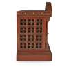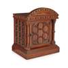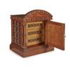 of rectangular section, the arched pediment with applied turned and painted roundels, above a single door with applied hoop panelling opening to reveal three oak drawers stained and varnished and with corresponding applied hoop decoration, the sides with blind fretwork panelling, the whole raised on a plinth