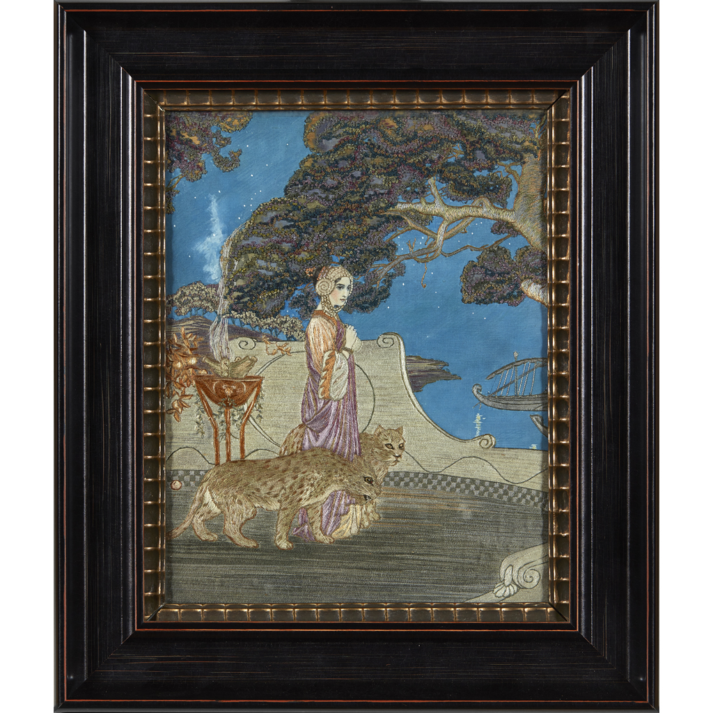 'CIRCE, THE ENCHANTRESS', PAINTED AND EMBROIDERED PANEL, CIRCA 1912