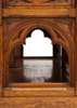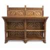 oak, the foliate carved superstructure above open shelves flanked and divided by uprights carved with pyramid devices, the sides pierced with quatrefoils