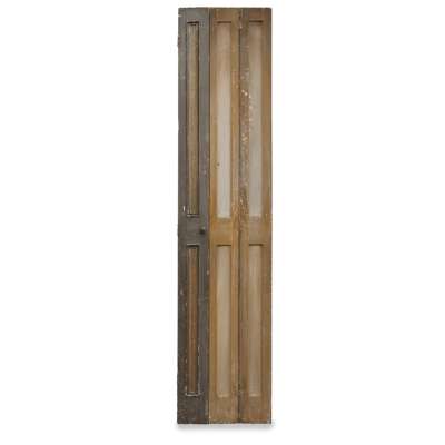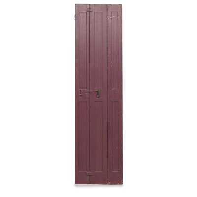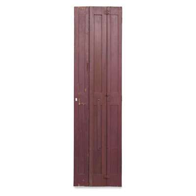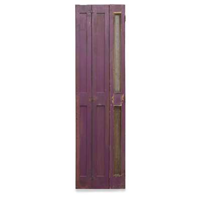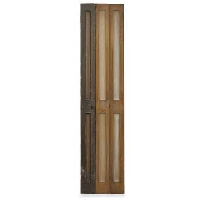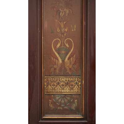 Note: These doors and accompanying shutters and architraves represent a rare surviving example of an 'Aesthetic' or 'House Beautiful' interior. The Aesthetic Movement of the late nineteenth century advocated the use of foreign or 'exotic' influences in the decoration of the home. Long-running articles in influential publications such as the 'Magazine of Art' and the 'Art Journal' encouraged the idea that it was 'important to be up-to-date with artistic activities. Mrs Haweis, the popular authoress found a lucrative new direction for her journalism in this area and commented that "most people are now alive to the importance of beauty as a refining influence. The appetite for artistic instruction is even ravenous." As a cartoonist for Punch and a regular lampooner of the craze for decoration, Edward Linley Sambourne, whose London house is still preserved today, was not immune and the doors and architraves of his house at 18 Stafford Terrace are painted in a very similar fashion to the present lot.