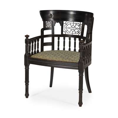 AESTHETIC MOVEMENT EBONISED ARMCHAIR, CIRCA 1881