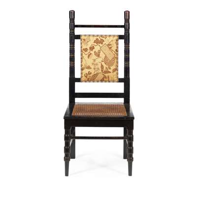They were made in oak or with an ebonised finish as with this example. The model was still in production in 1877 when it appeared in Watt's catalogue as a chair suitable for the library and prices at £4.4s.0d.