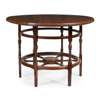 the circular top with moulded edge, raised on ring-turned and blocked legs linked by two ring stretchers and linked by radiating spoke stretchers supporting a central urn stand, the whole raised on square tapering feet