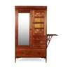 the reeded cornice above a bevelled mirror plate cupboard door flanked by a panelled carved with stylised foliate motifs above three drawers and a lower apron drawer, with panelled side, the right side with one lateral drop flap with pierced brackets, all raised on turned legs