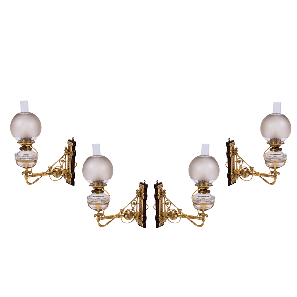 SET OF FOUR AESTHETIC MOVEMENT BRASS WALL LIGHTS, CIRCA 1875