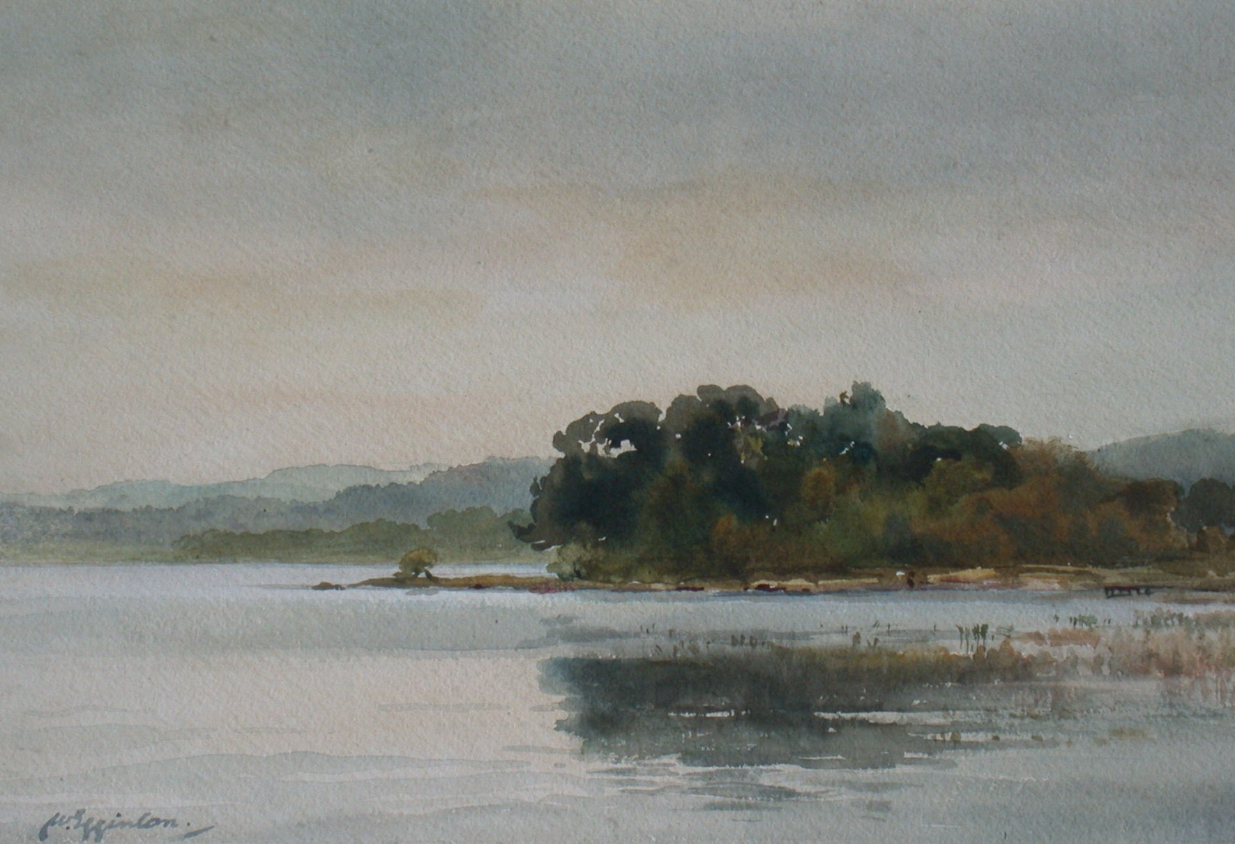 24cm x 55cm and four other unsigned, unframed watercolours by the same hand and an unframed oil painting (6)