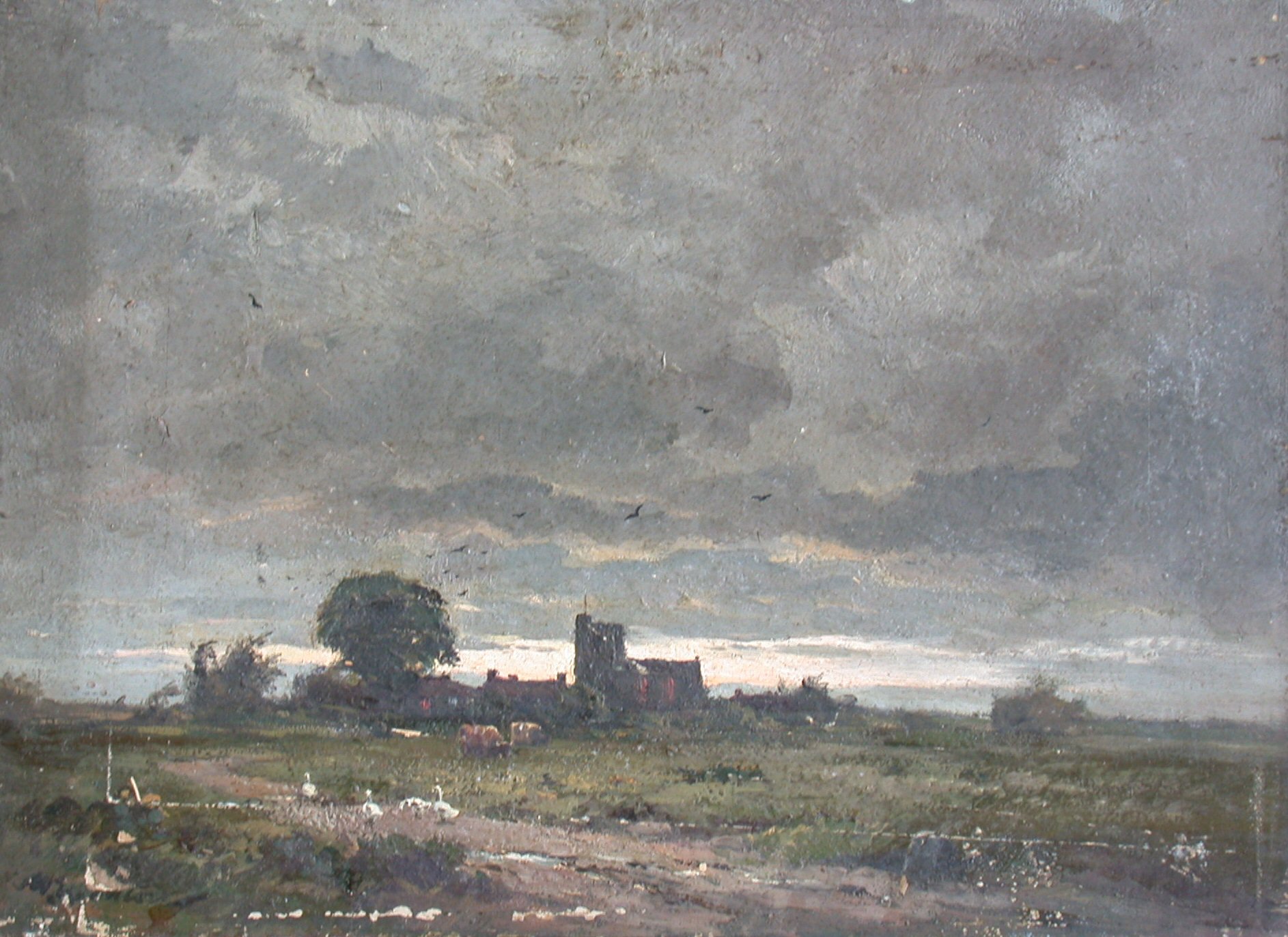 41cm x 56cm and two other unsigned, unframed oil paintings by the same hand (3)