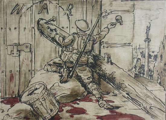 20cm x 21.5cm, and another two, Nicholson's 'War', a lithograph and Augustus John, 'Devastation', a lithograph (3)