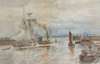 A SAILING SHIP BEING TAKEN OUT OF HARBOUR BY A PADDLE STEAMER