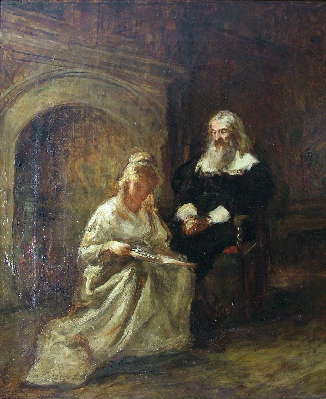 Note: Inscription on canvas verso states that this is a study for 'Sunday Morning Lesson', which was exhibited at the Royal Scottish Academy in 1860, no 123.
