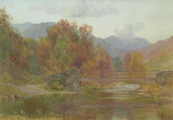 14.5cm x 27cm (5.75in x 10.5in) and another two, 'Autumnal Colours', 'Gathering Wood' by the same hand (3)