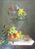 STILL LIFE WITH FLOWERS AND FRUIT ON A MARBLE TOP