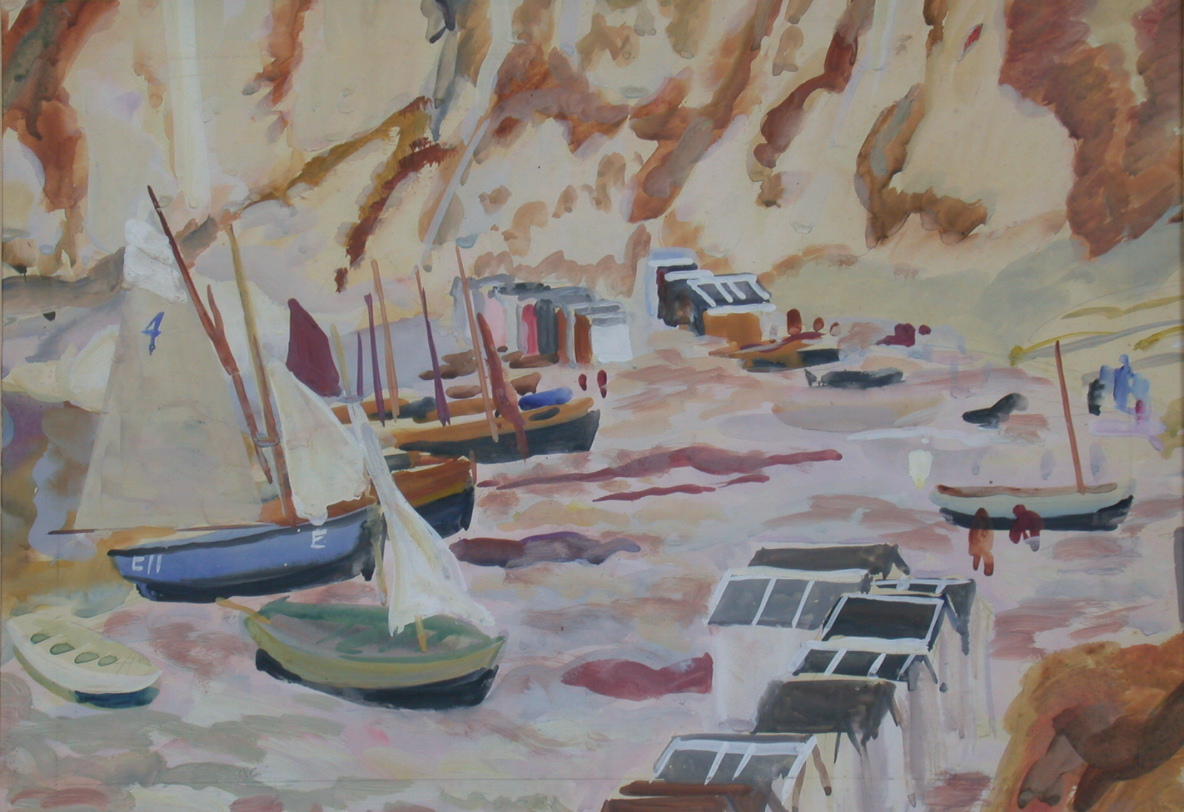 BOATS AND BATHEING HUTS, BEER, DEVON