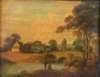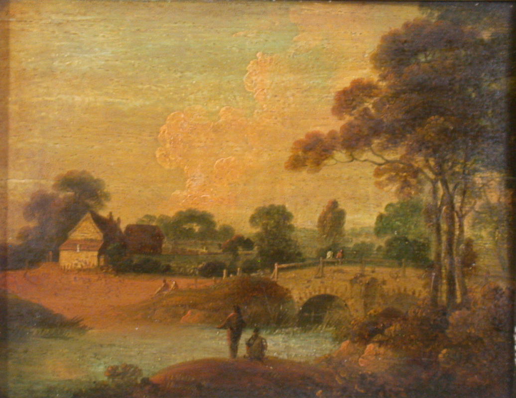 A WOODED RIVER LANDCSAPE WITH FISHERMEN