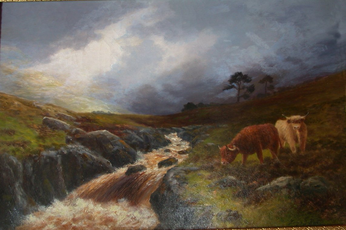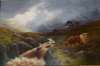 HIGHLAND CATTLE BY A MOUNTAIN TORRENT